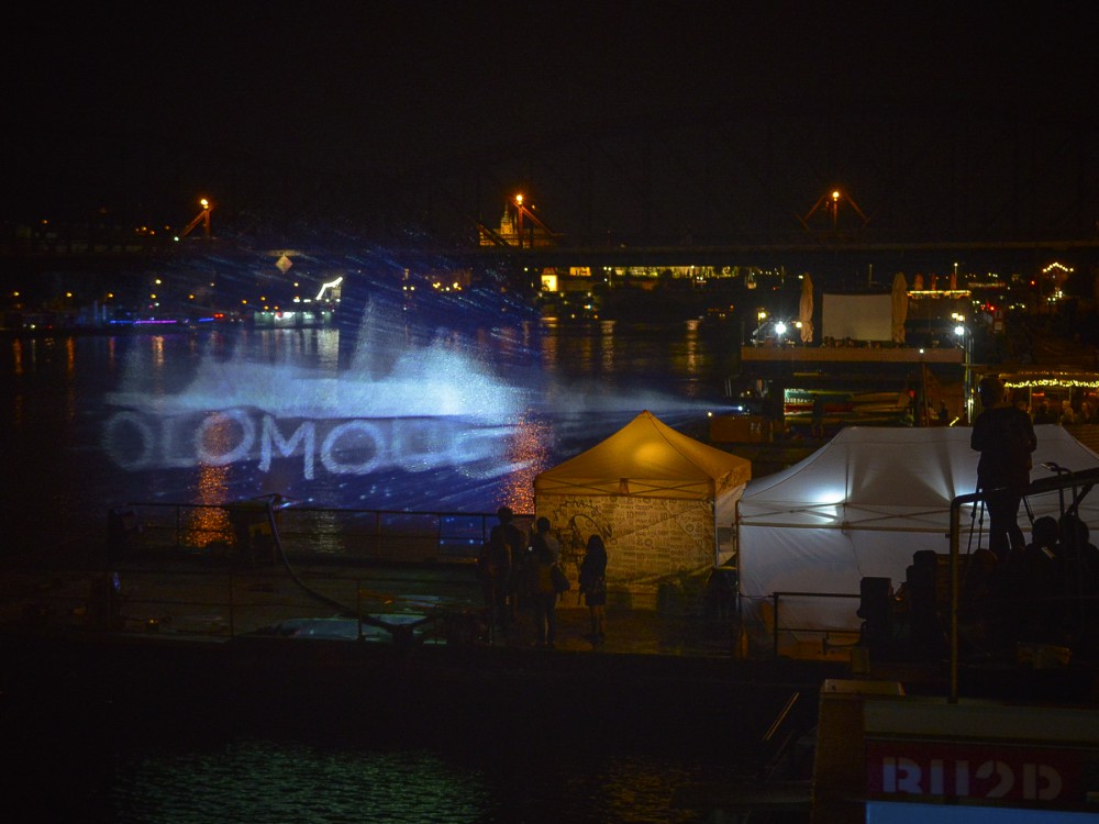 Olomouc v Praze! Noční projekce na vodní stěnu 6x10 metrů byla vrcholem absolventského setkání UP Olomouc na pražské Náplavce.