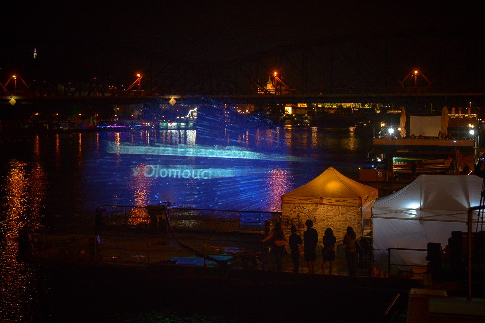 Noční projekcí na vodní stěnu 6x10 metrů vyvrcholilo na pražské Náplavce setkání absolventů Univerzity Palackého.