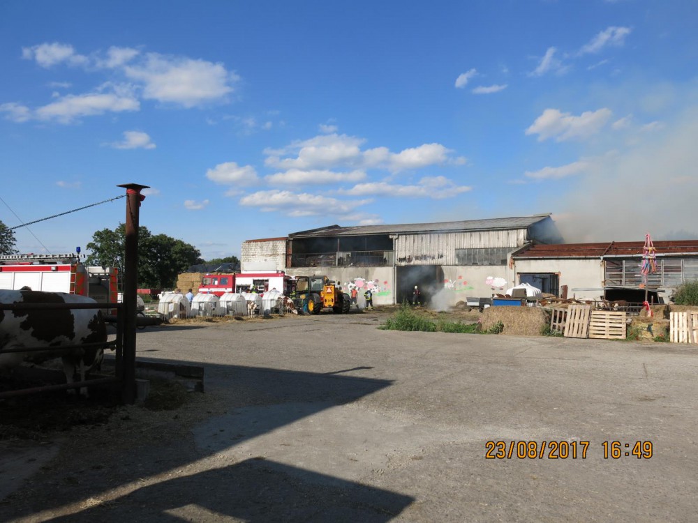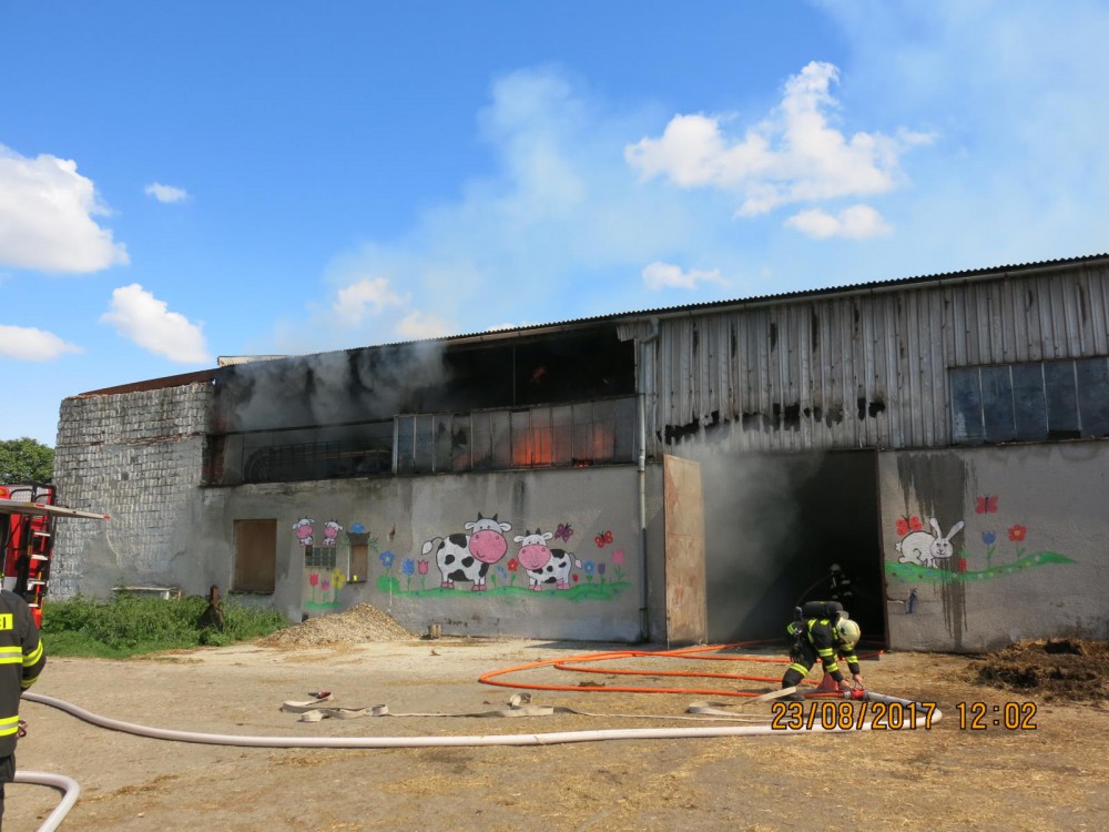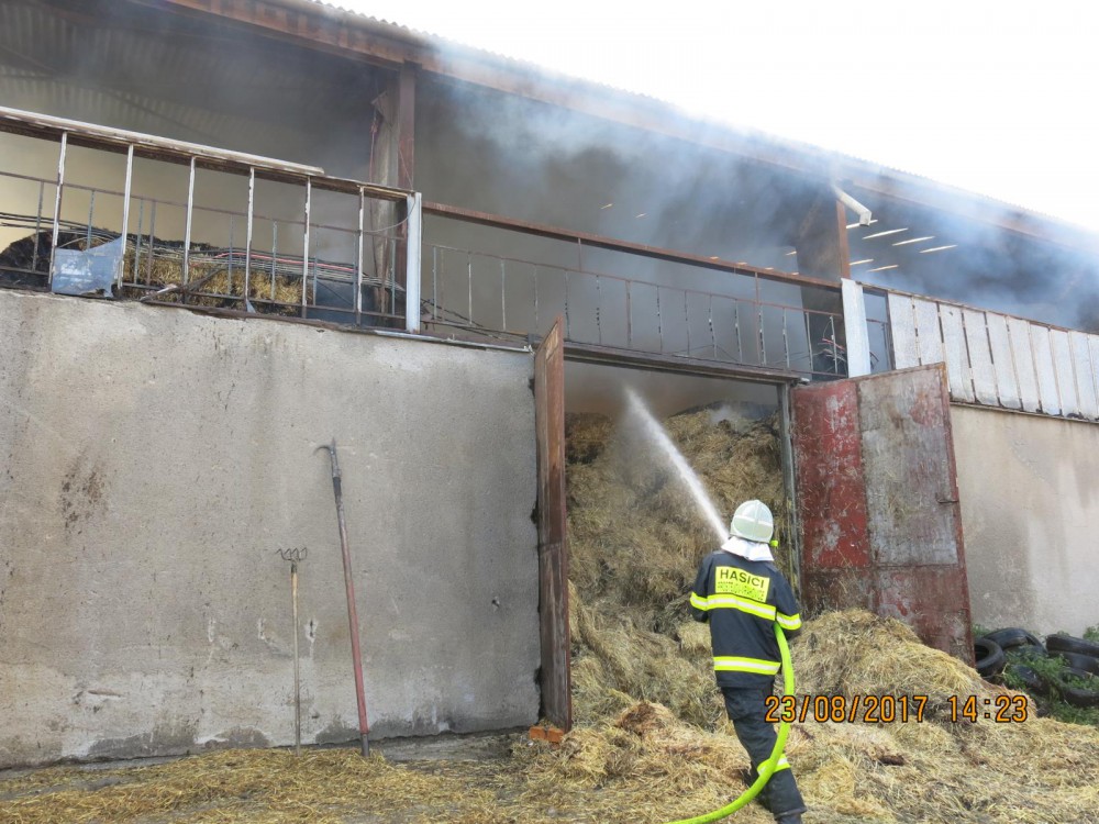 VIDEO: Hasiči už druhý den zasahují u požáru skladu slámy. Došlo k němu při svařování