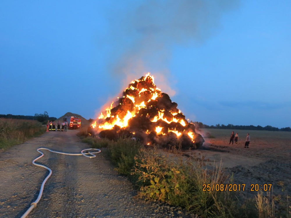 VIDEO: Za obcí Želechovice hořel stoh slámy. Požár vznikl kvůli hře dětí s ohněm