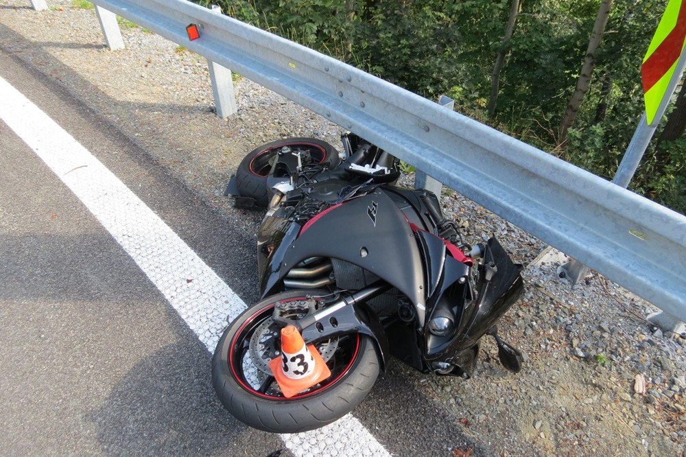Řidič motocyklu nezvládl prudkou zatáčku a narazil do svodidel