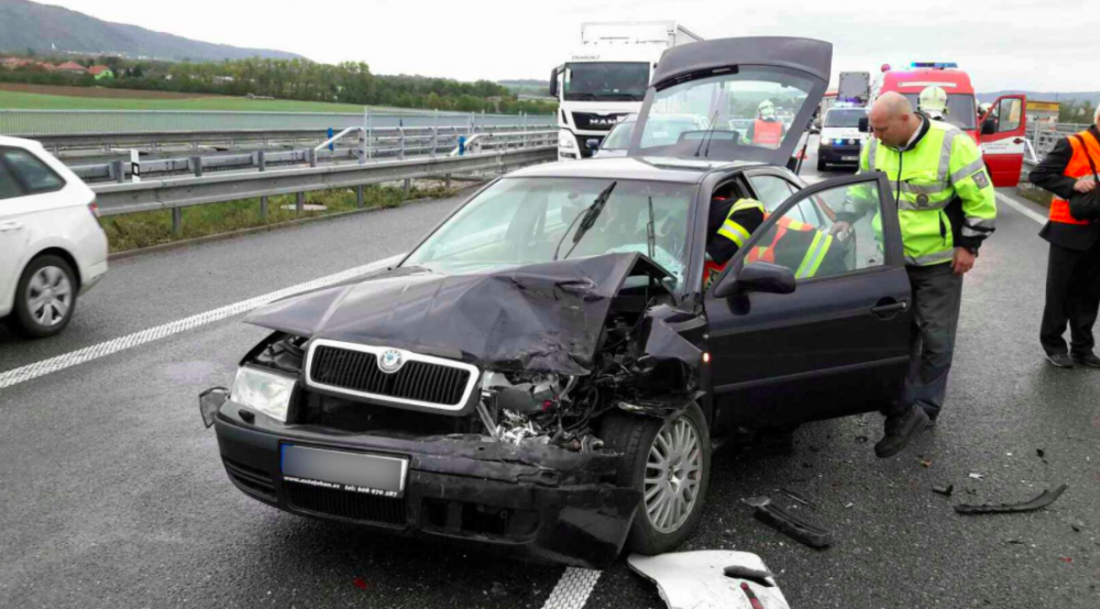 Na D1 se stala hromadná nehoda. Střetla se tam čtyři auta, tři lidé se zranili