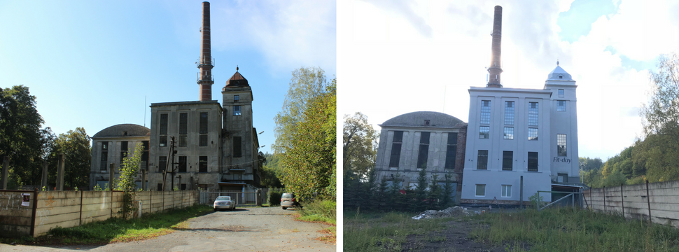 Vlevo před koupí a rekonstrukcí, vpravo po rekonstrukci
