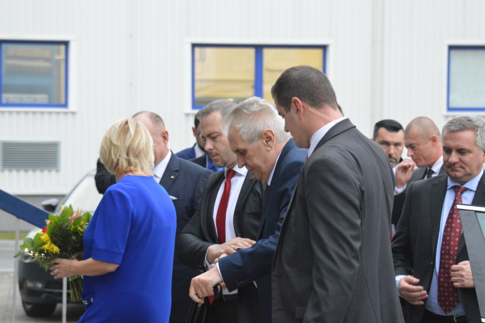 FOTOGALERIE: Prezident Zeman navštívil Babišovu Olmu. Symbolicky si připil mlékem