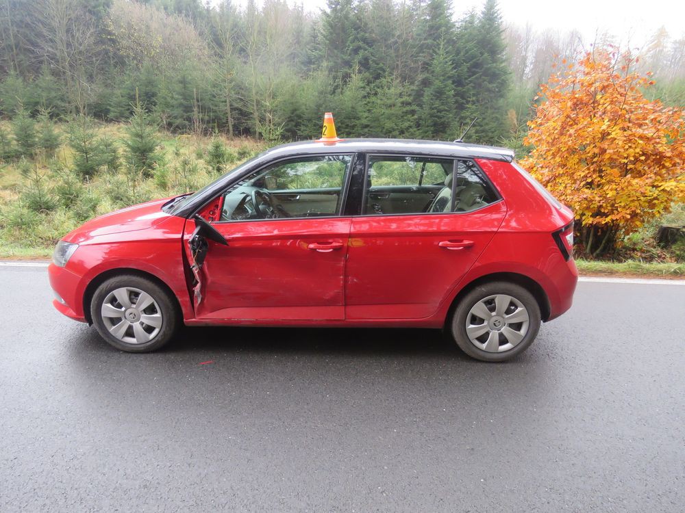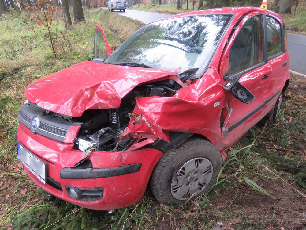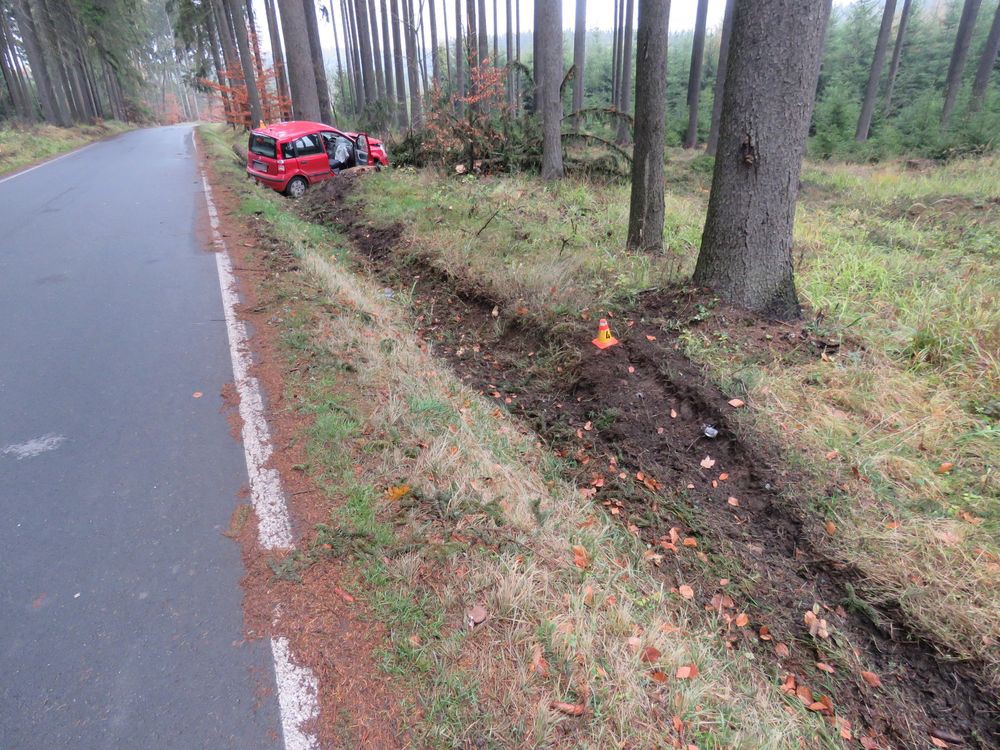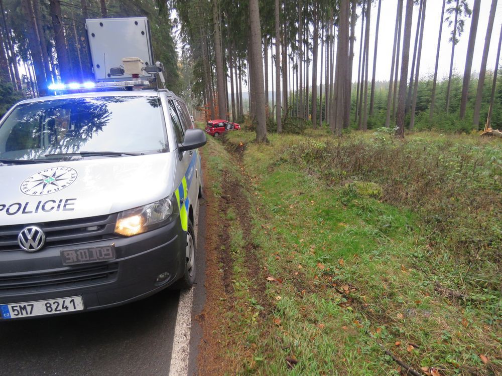 FOTO: Auta, jedoucí po úzké silnici, se střetla bokem. Při nehodě se dva lidé zranili