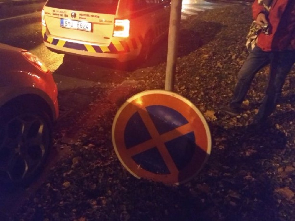 Muž chtěl v noci na značku přimontovat "Zákaz zastavení". Nelíbilo se mu parkování aut v ulici