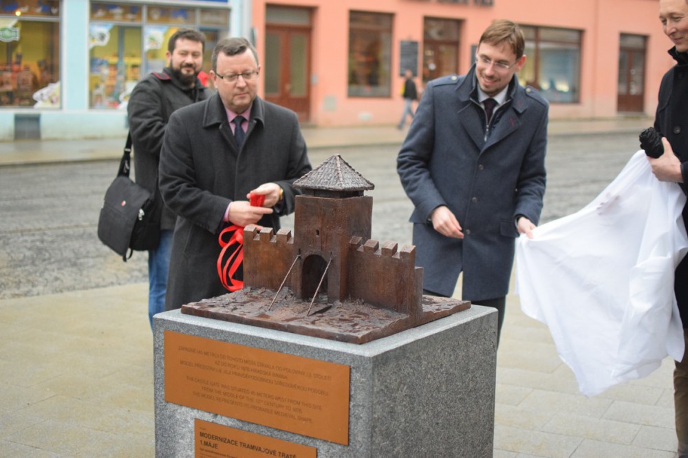 FOTO: Třída 1. máje je otevřena. Pozůstatky Hradské brány bude přípomínat bronzový model