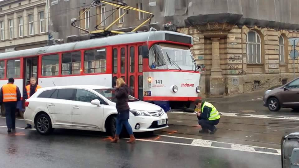 Na Palackého ulici se střetlo auto s tramvají