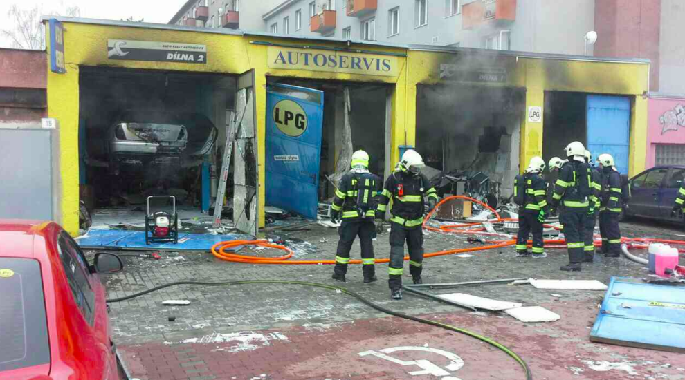 AKTUÁLNĚ: Hasiči se potýkají s požárem autoservisu. Výbuch zranil jednoho člověka