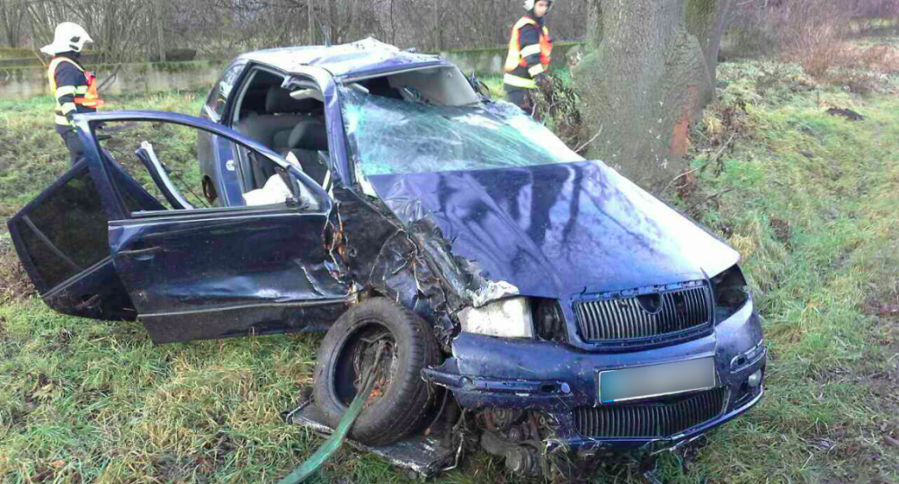 Řidič narazil se svým autem do stromů, musel být resuscitován