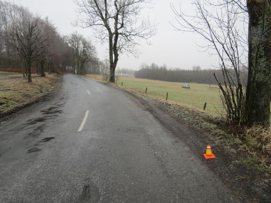 Řidička se svým autem vyletěla ze zatáčky, prorazila ohradník a skončila na pastvině