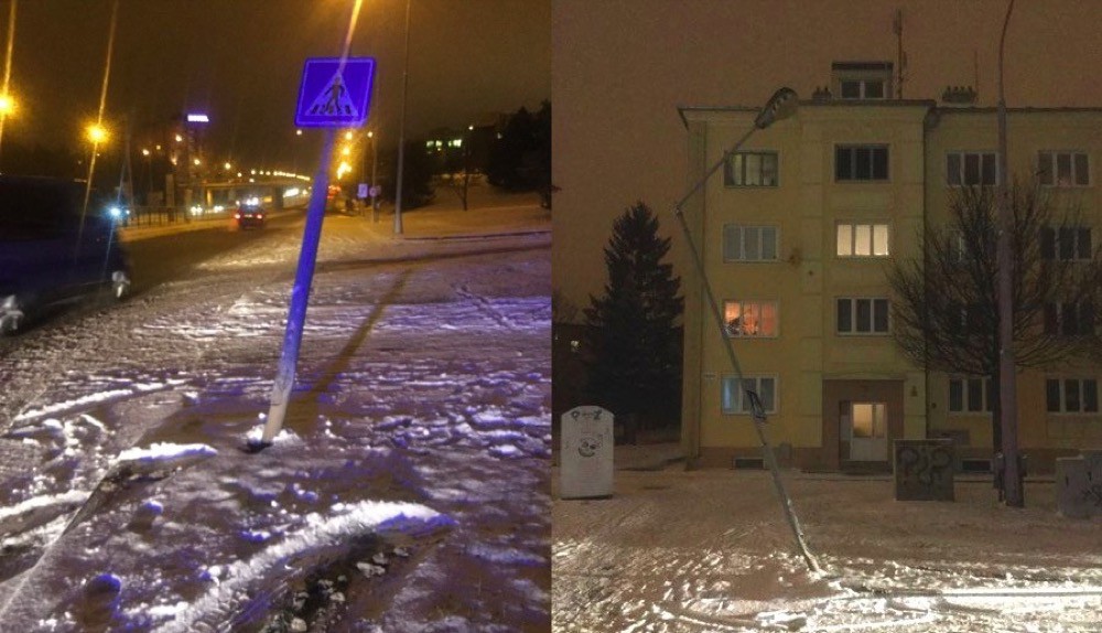 Řidič na Wolkerově ulici narazil se svým autem do lampy a vyvrátil ji, z místa nehody ujel
