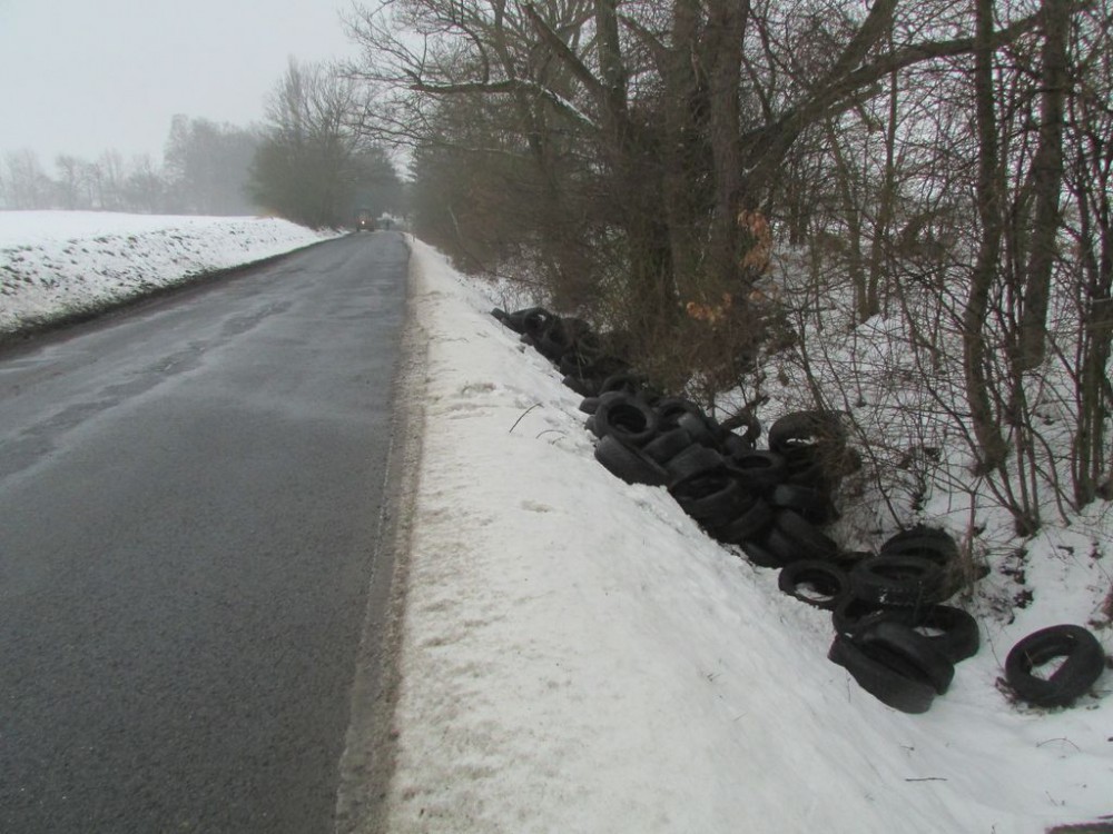 Neznámý pachatel vysypal do příkopu u cesty asi 140 pneumatik, hledá ho policie