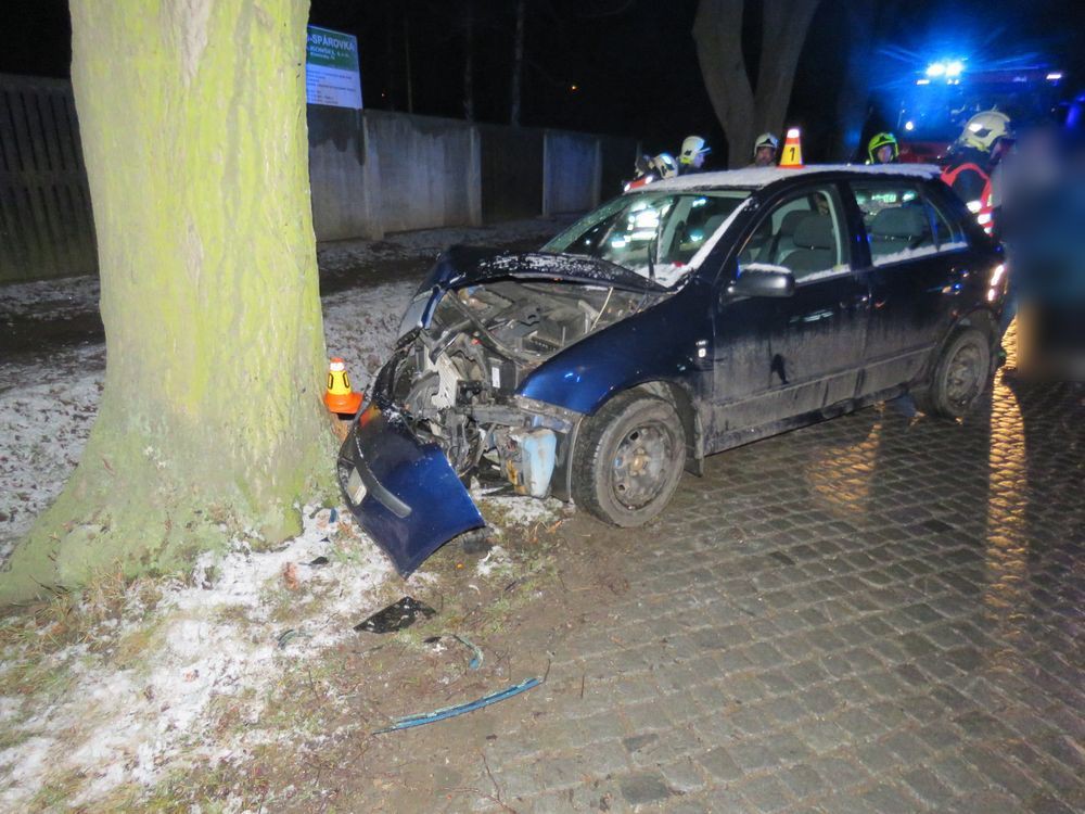 Řidič narazil do stromu a odmítl test na alkohol, při nehodě se zranil spolujezdec