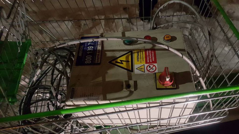 Dva muži si na nákupních vozících z Globusu odváželi svinovací dveře a rozvodnou elektrickou skříň