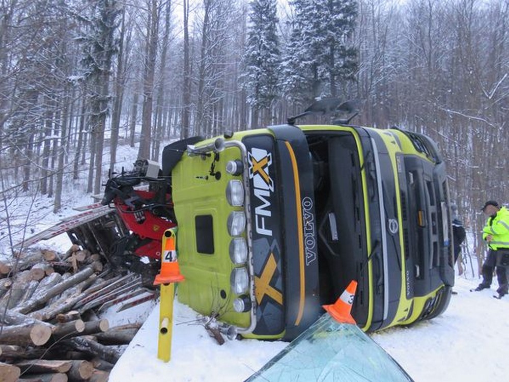 S návěsem převážejícím dřevo se utrhla krajnice, škoda je jeden a půl milionu korun
