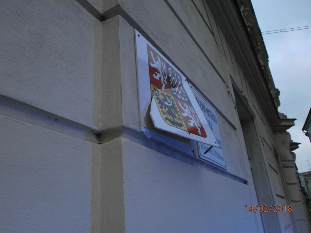 Vandal poničil státní znak na budově mateřské školy Na Hradě v Olomouci