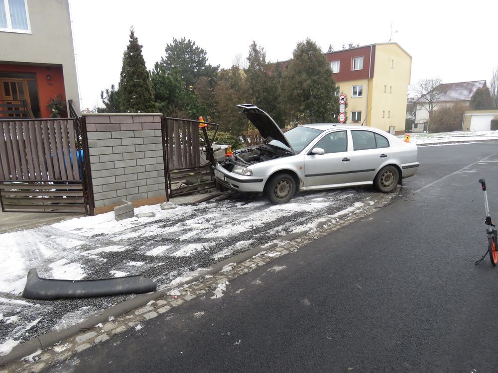 Opilý řidič zpanikařil, když policisté před ním rozsvítili majáky. Strhl řízení a skončil v oplocení domu