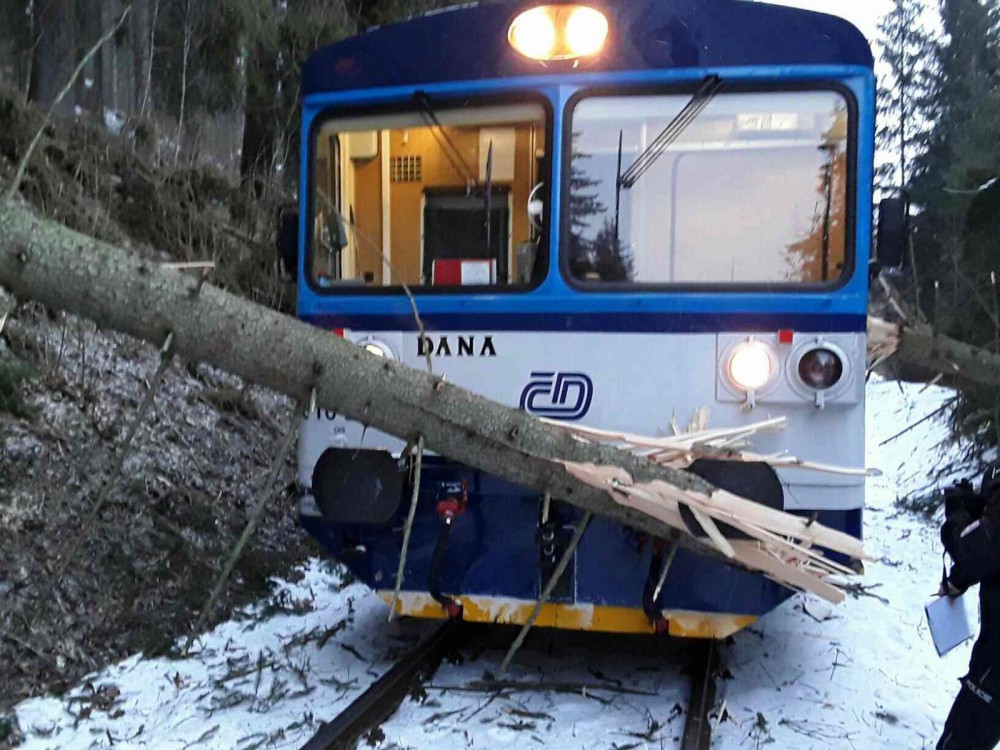 Vlak narazil do padlého stromu, provoz na trati je obnoven
