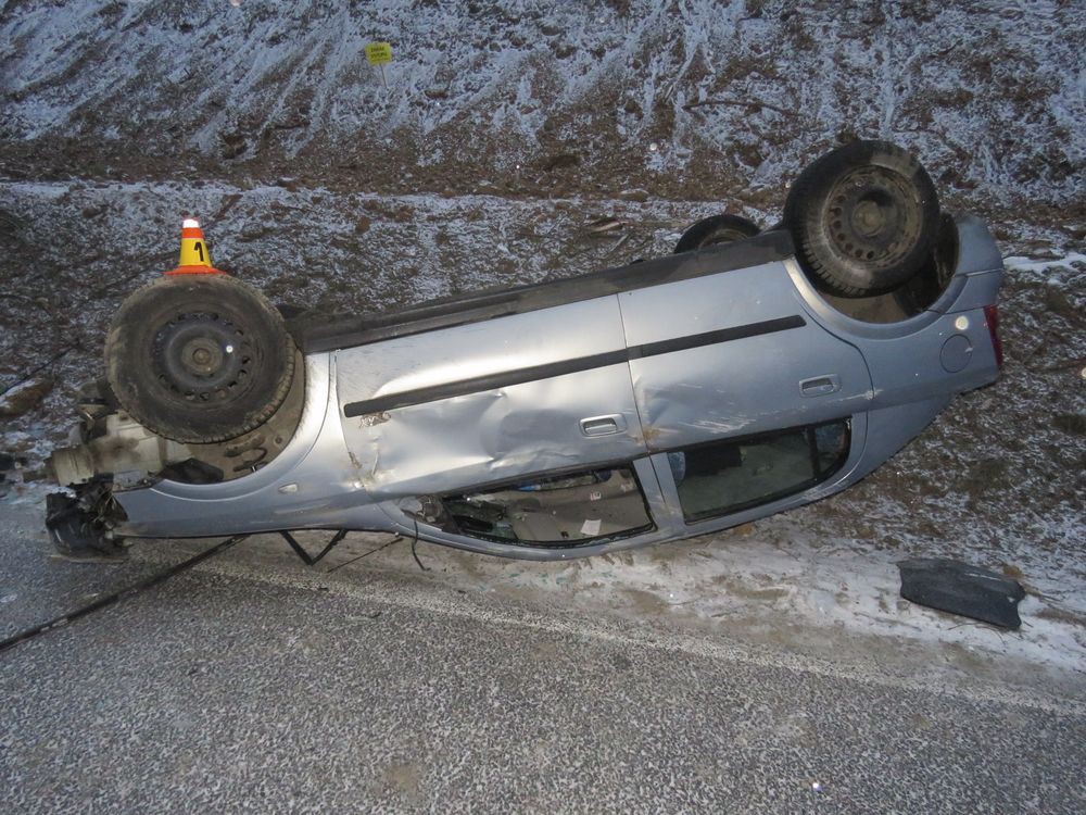 Třiapadesátiletá řidička převrátila auto na střechu, do nemocnice ji transportoval vrtulník