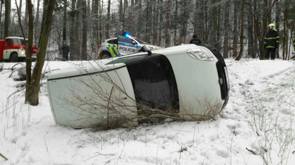 Dvě jednotky hasičů zaměstnala nehoda převrácené dodávky u Branné