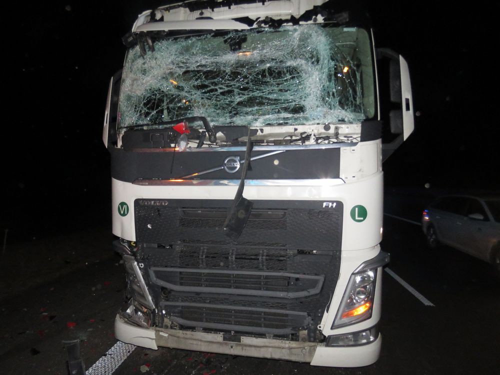 FOTO: Kamion na dálnici narazil do uzavírkové tabule