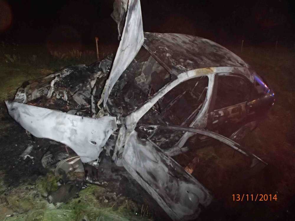 Včera v noci se stala vážná nehoda u obce Lukavice, jedno auto vzplálo