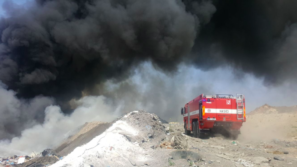 FOTO: V Hradčanech u Přerova hořela velká skládka odpadu, na místě zasahovalo šedesát hasičů