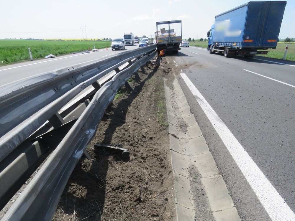 Řidič se nevěnoval řízení, na dálnici u Olšan přejel oba jízdní pruhy a zastavil se ve svodidlech