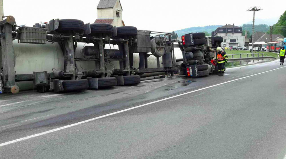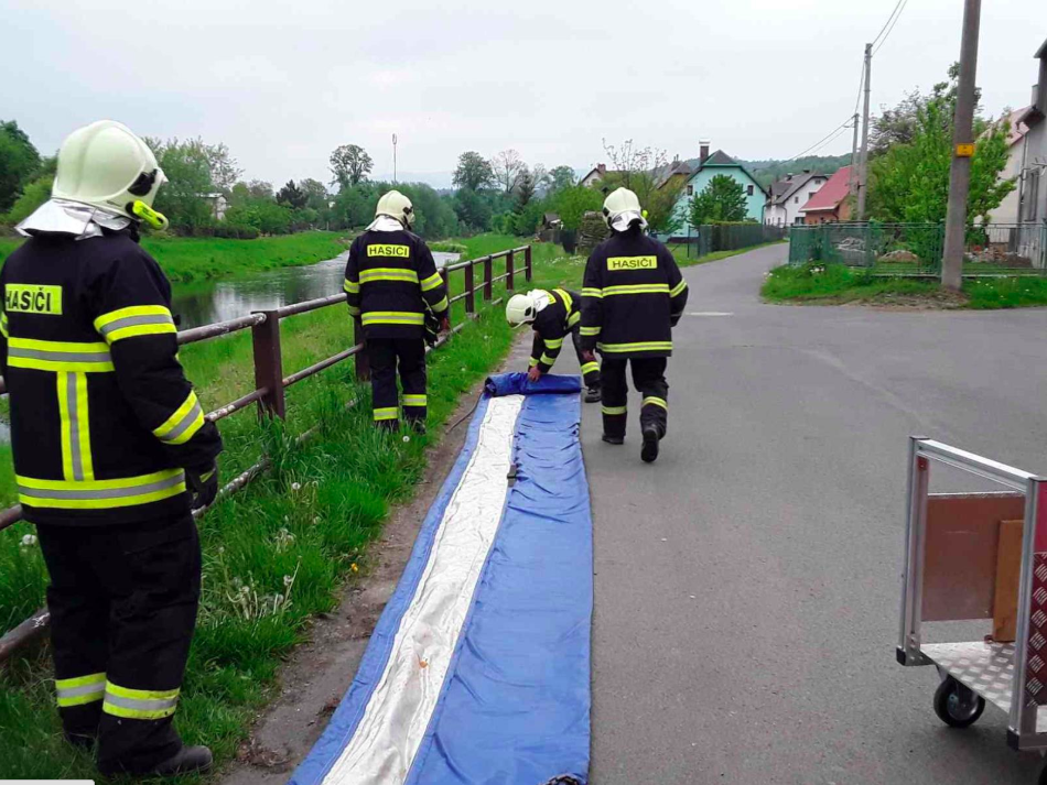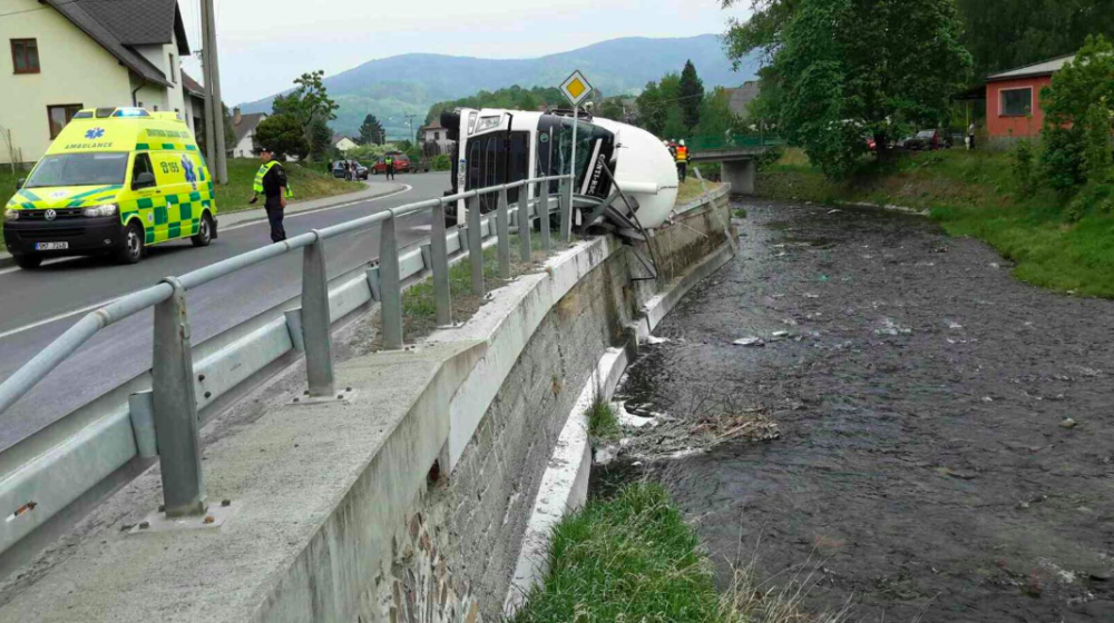 Hasiči vyprostili převrácenou cisternu nad ránem, rybáři hlásí úhyn ryb kvůli vylité ropě