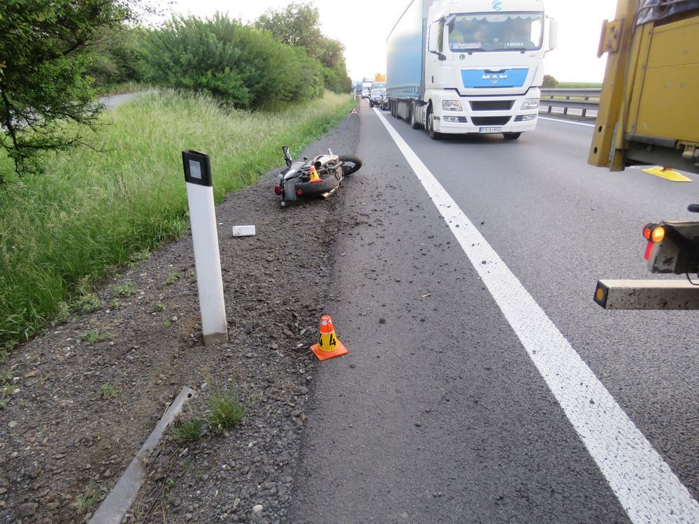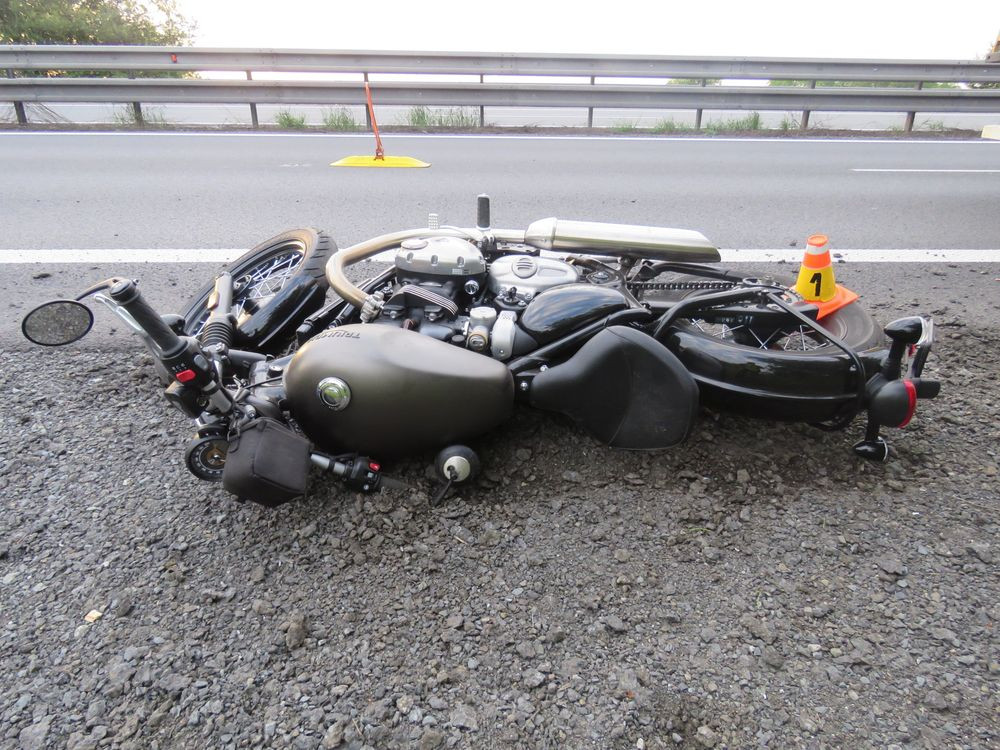 Na dálnici D46 ve směru na Olomouc havaroval ráno motorkář, v místě se tvořily kolony