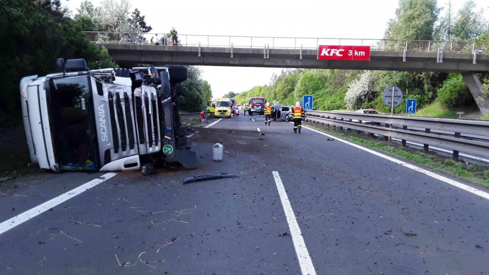 AKTUÁLNĚ: Kamion nedobrzdil a narazil do kolony aut, D46 na Olomouc bude do večera uzavřená