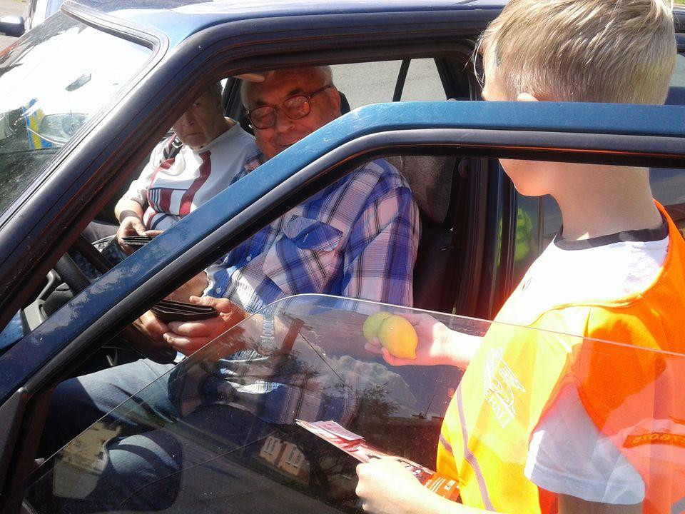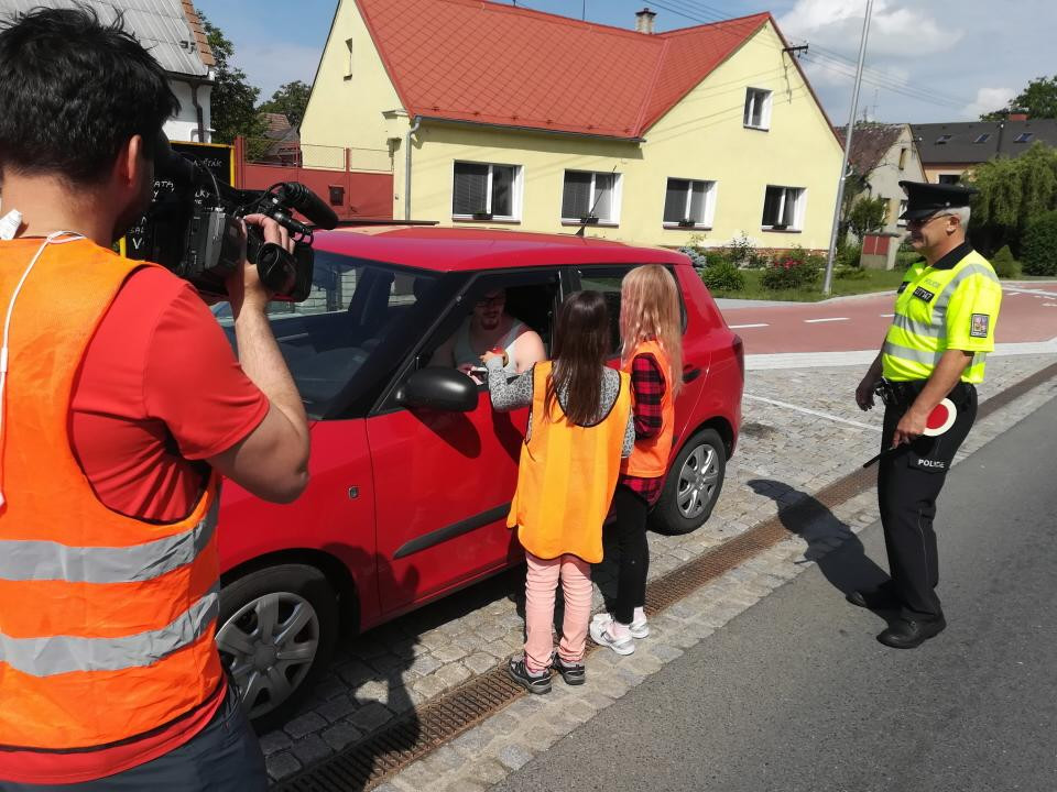 FOTO: Silnice na Olomoucku hlídaly děti, řidičům dávaly citróny nebo jablka