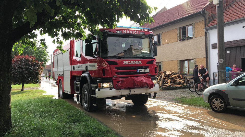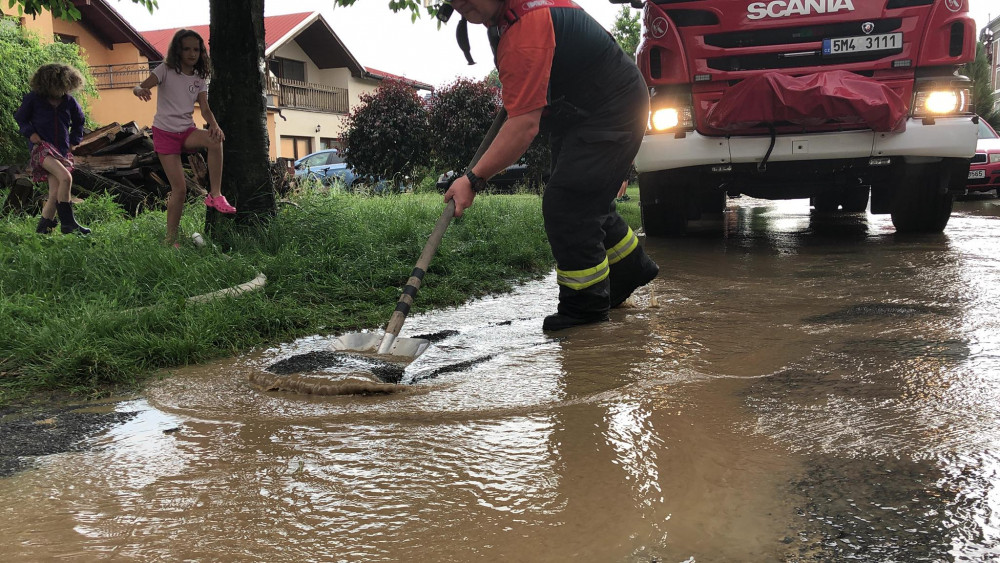 FOTO: Na Olomoucku řádila bouřka s přívalovým deštěm, ve Štarnově zasahovaly tři jednotky hasičů