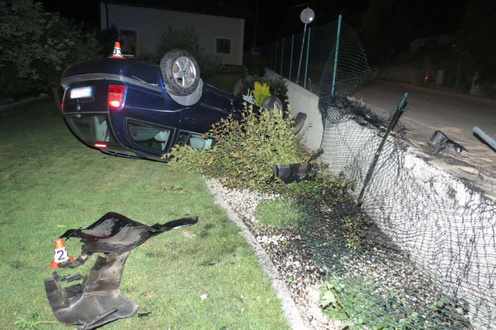 Řidič se dvěma a půl promile převrátil auto na střechu, zranil sebe i spolujezdce