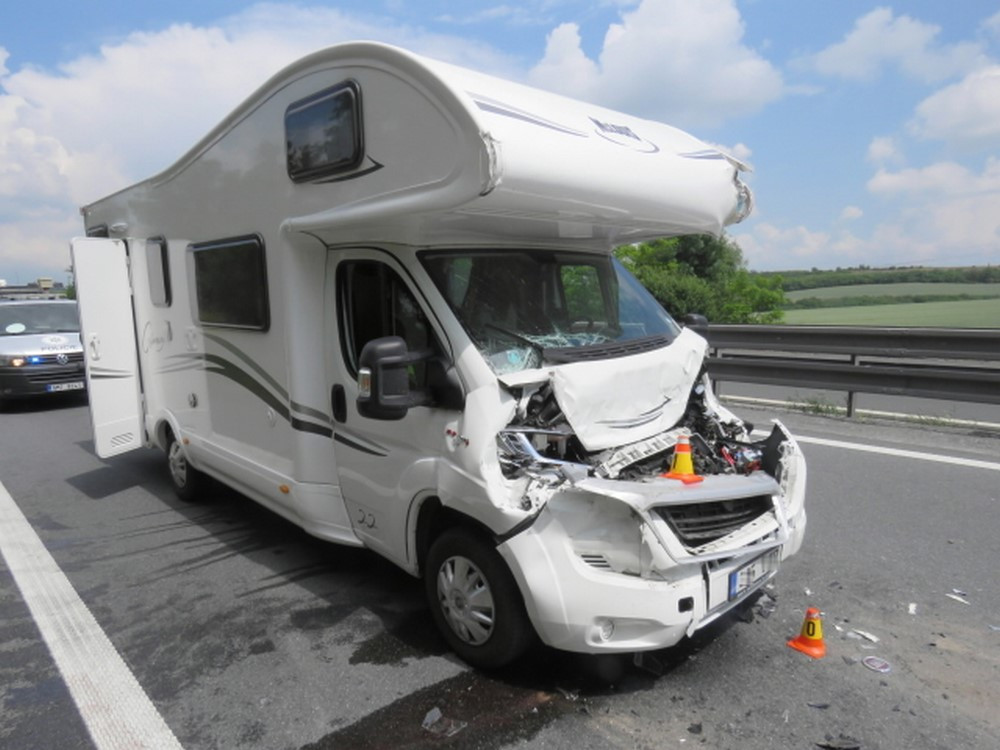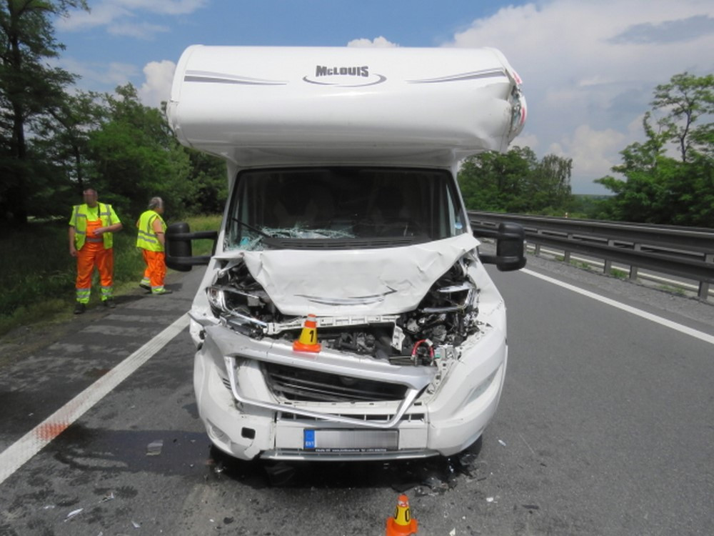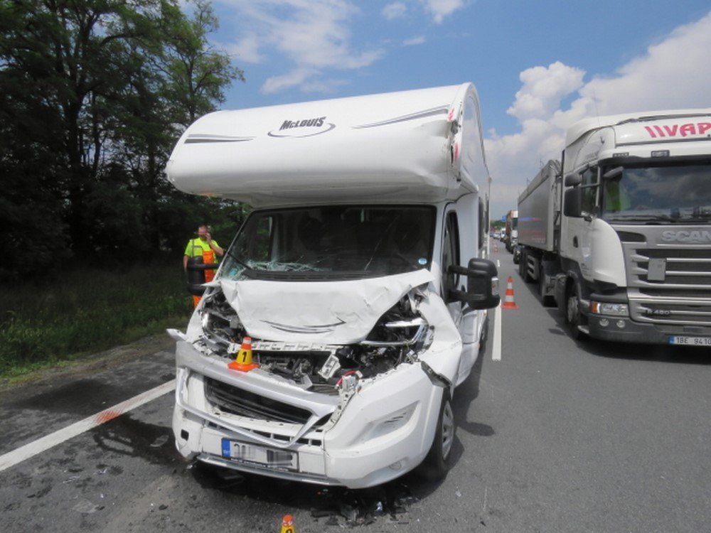 Řidič obytňáku nedodržel bezpečnou vzdálenost, nedobrzdil a naboural auto před sebou