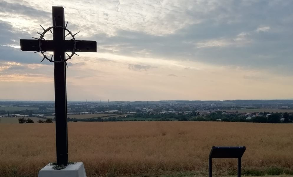 Čtyřmetrový kříž na Švédských šancích nad Přerovem nově připomíná povraždění 267 Němců