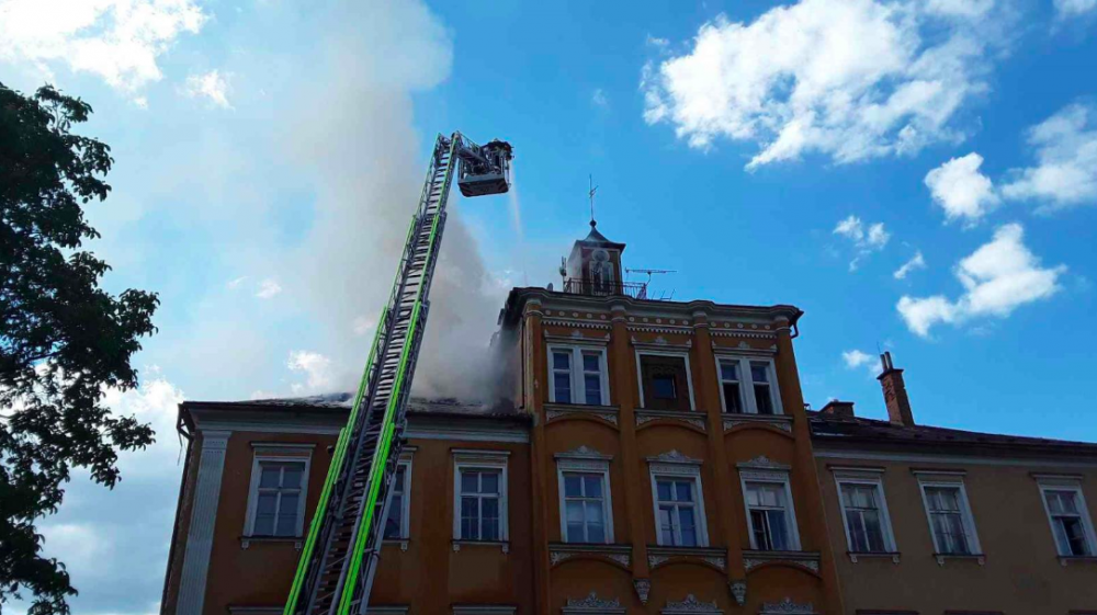 Hasiči zasahují u požáru bývalého zámečku v Třemešku, škoda je odhadována na jeden milion korun