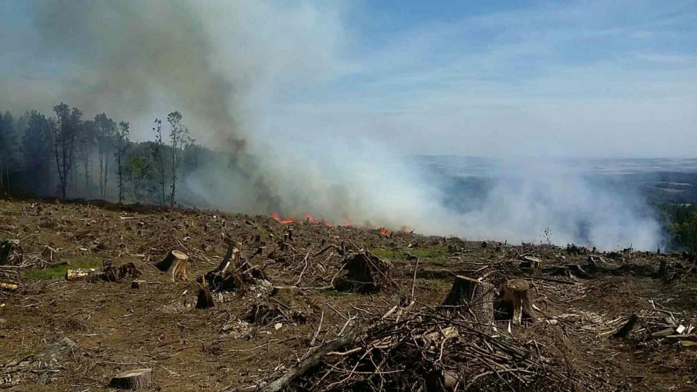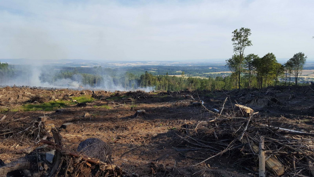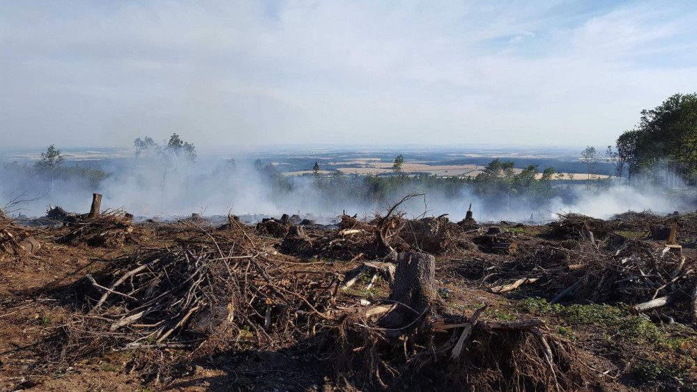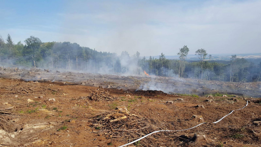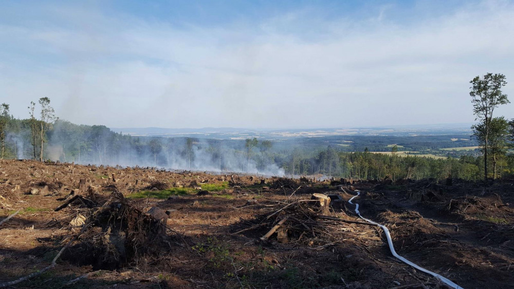 FOTO: Hasiči od odpoledne likvidují požár ve Vojenském prostoru Libavá