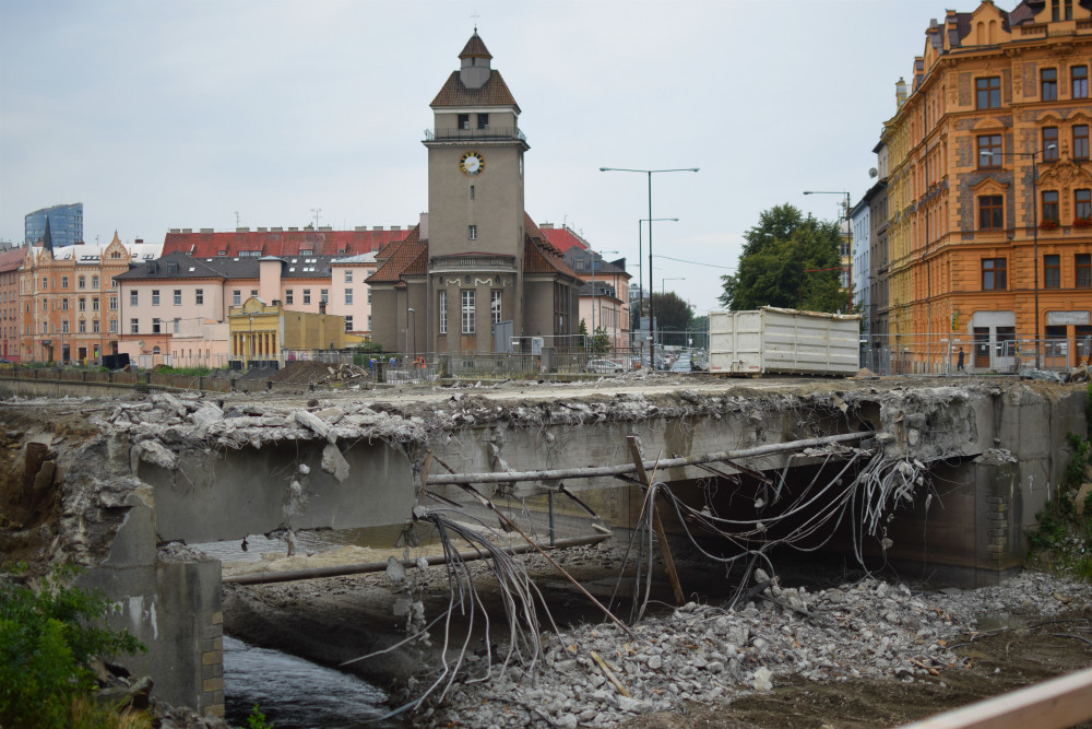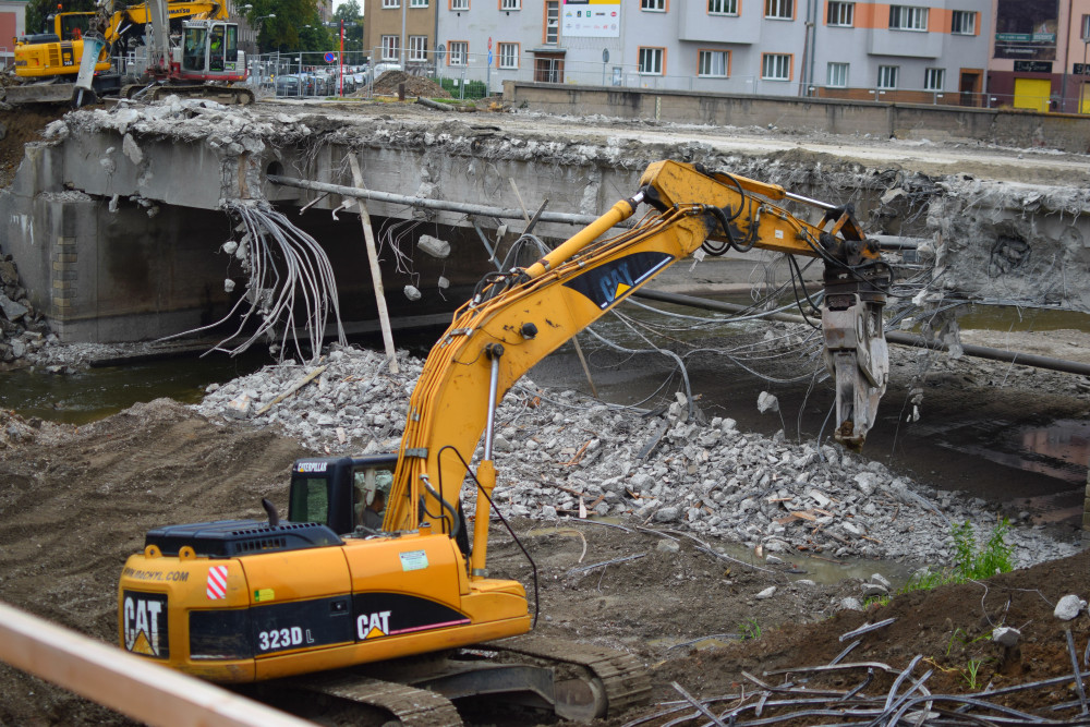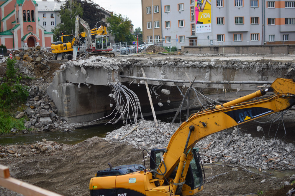 FOTO/VIDEO: Podívejte se, jak probíhá demolice mostu v Komenského ulici