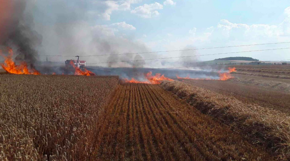 Čtyři jednotky hasičů se potýkaly požárem pole. Oheň vznikl po pádu drátů elektrického vedení