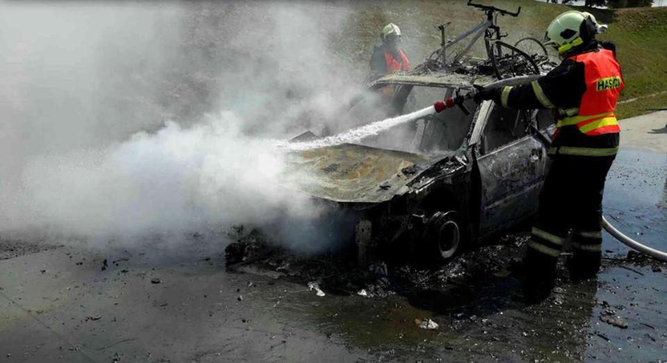 Na dálnici D35 hořelo osobní auto, oheň se rozšířil i na porost kolem silnice