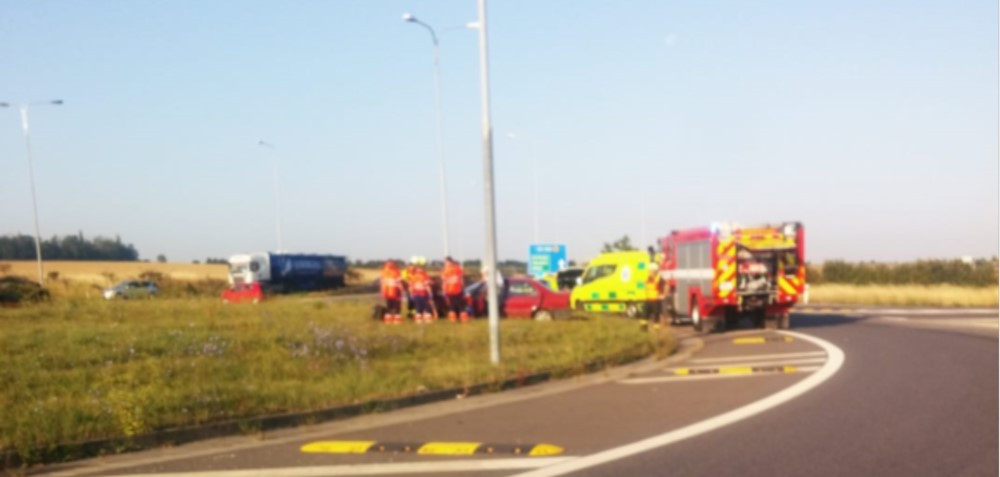 Řidič nezvládl řízení a skončil uprostřed kruhového objezdu u Globusu, na místě zasahovala i záchranka