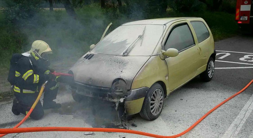 U autobusové zastávky hořelo auto, požár museli likvidovat hasiči
