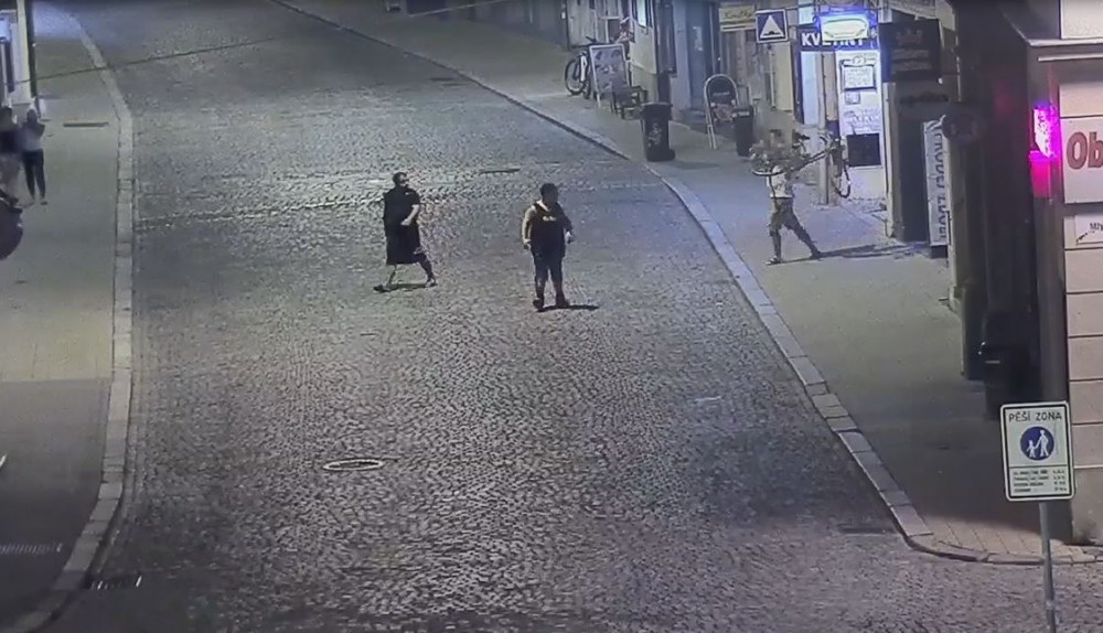 VIDEO: Opilý muž řádil v centru Olomouce. S cizím kolem hodil o zem, převrátil poutač i lavičku