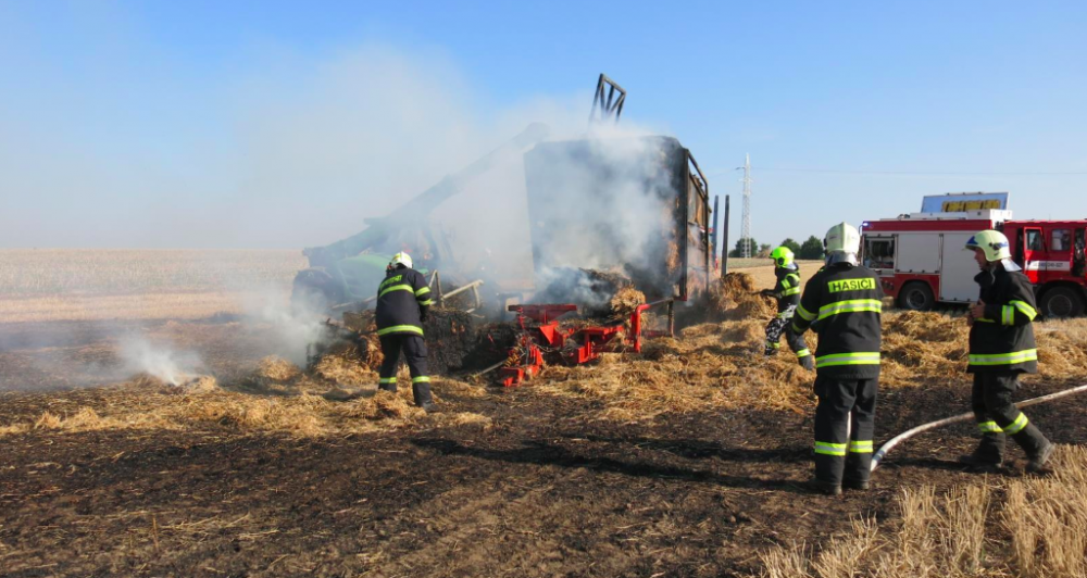 Na poli u Olomouce shořel vlek na slámu, škoda je milion korun