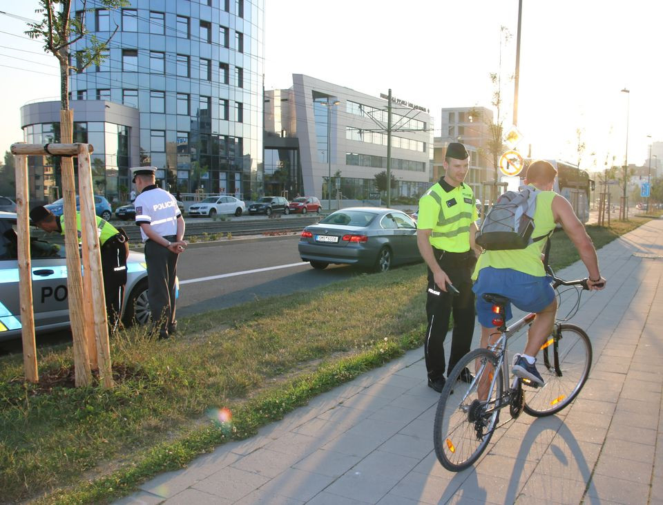 FOTO: Policisté kontrolovali cyklisty, kteří v Olomouci jezdí po chodníku
