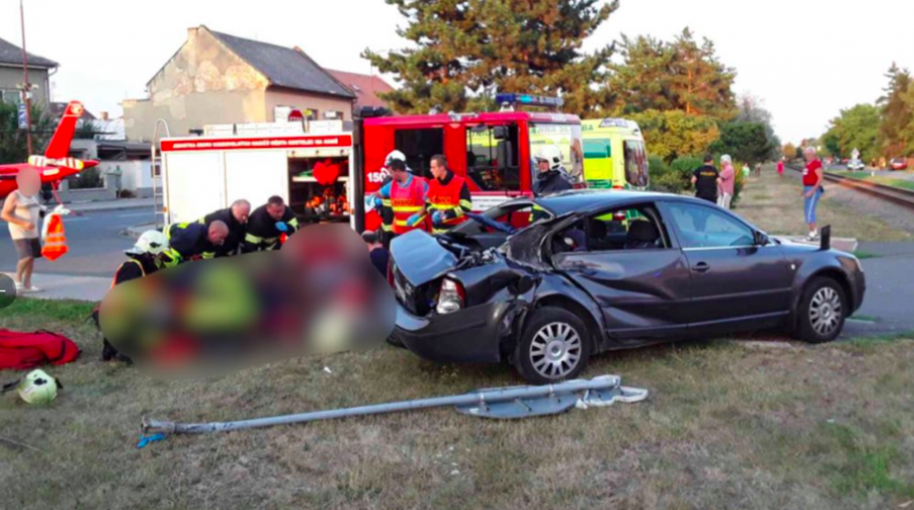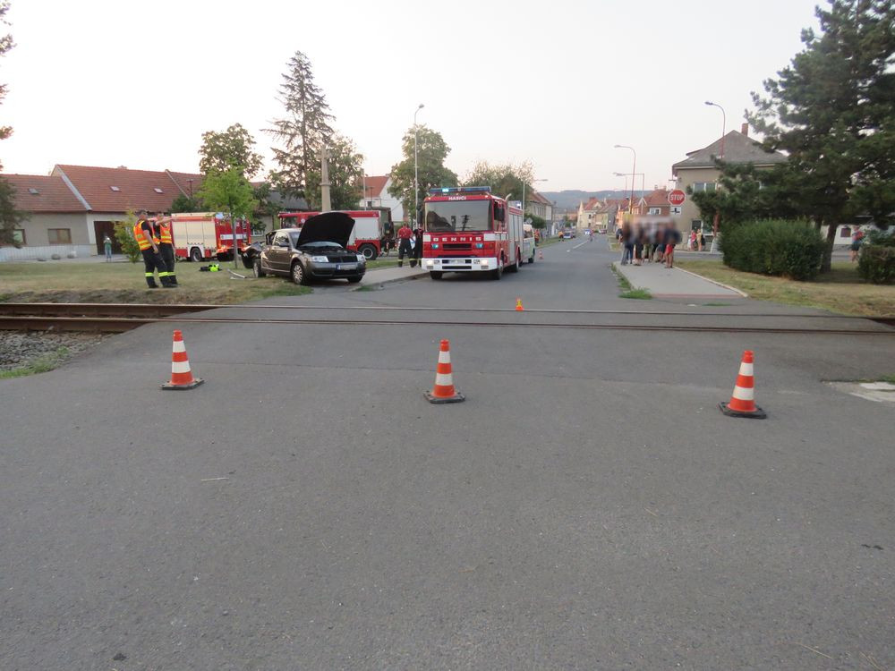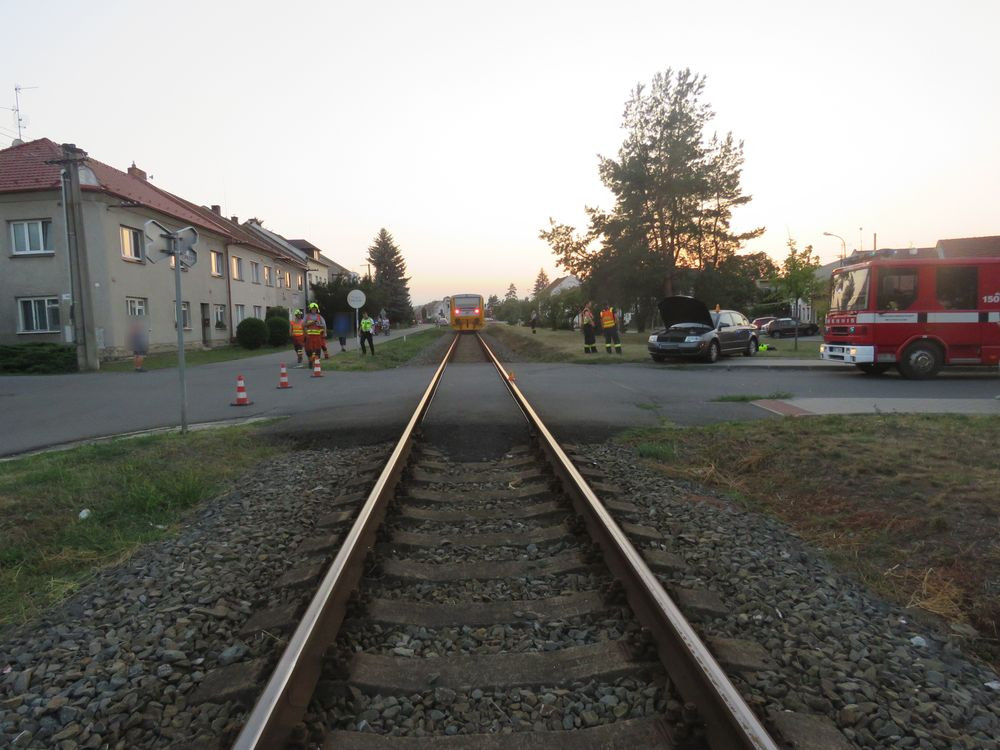 FOTO: Po střetu auta a vlaku pro zraněného letěl vrtulník