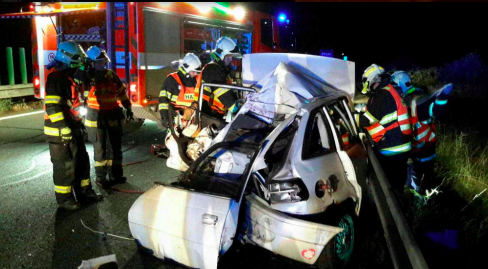 Na dálnici u Příkaz se střetl osobák s náklaďákem, zraněného řidiče museli z vraku vozu vyprostit hasiči