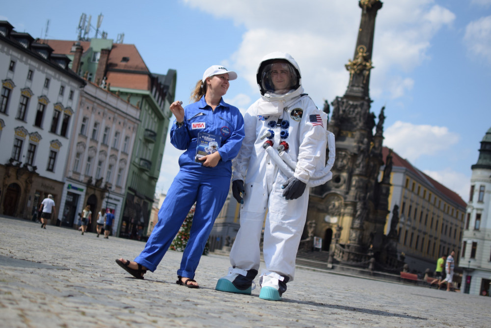 FOTO/SOUTĚŽ: Olomouc navštívil astronaut, lákal na probíhající vesmírnou výstavu. Vyhrajte na ni lístky!